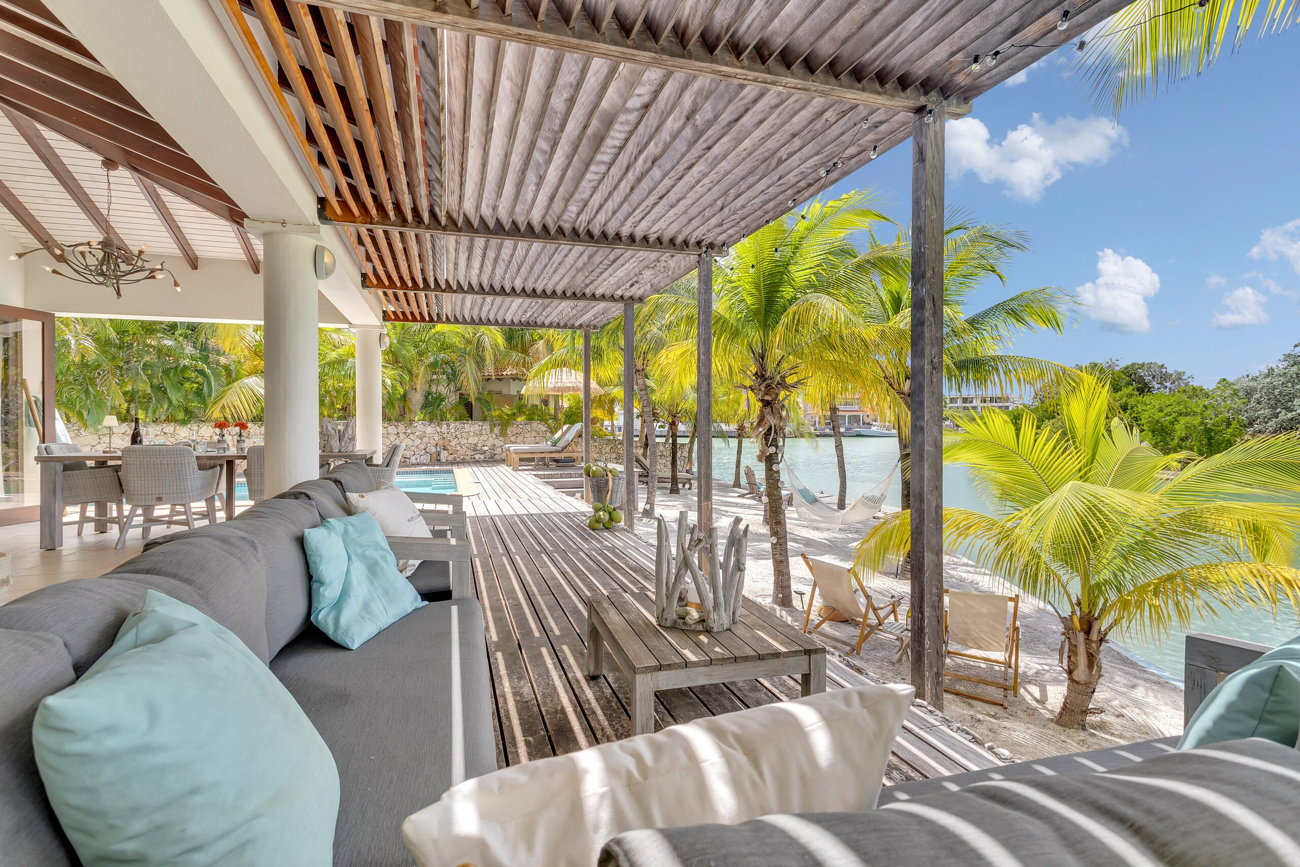 Ligt, zoals de naam al aangeeft, aan een lagoon die direct in open verbinding met de zee staat. De ruime “living” met de open keuken heeft veel daglicht en met “shutters” afsluitbare ramen. Een grote “master bedroom” met eigen toilet, wastafel en douche heeft een eigen terras met openslaande deuren naar het water toe.